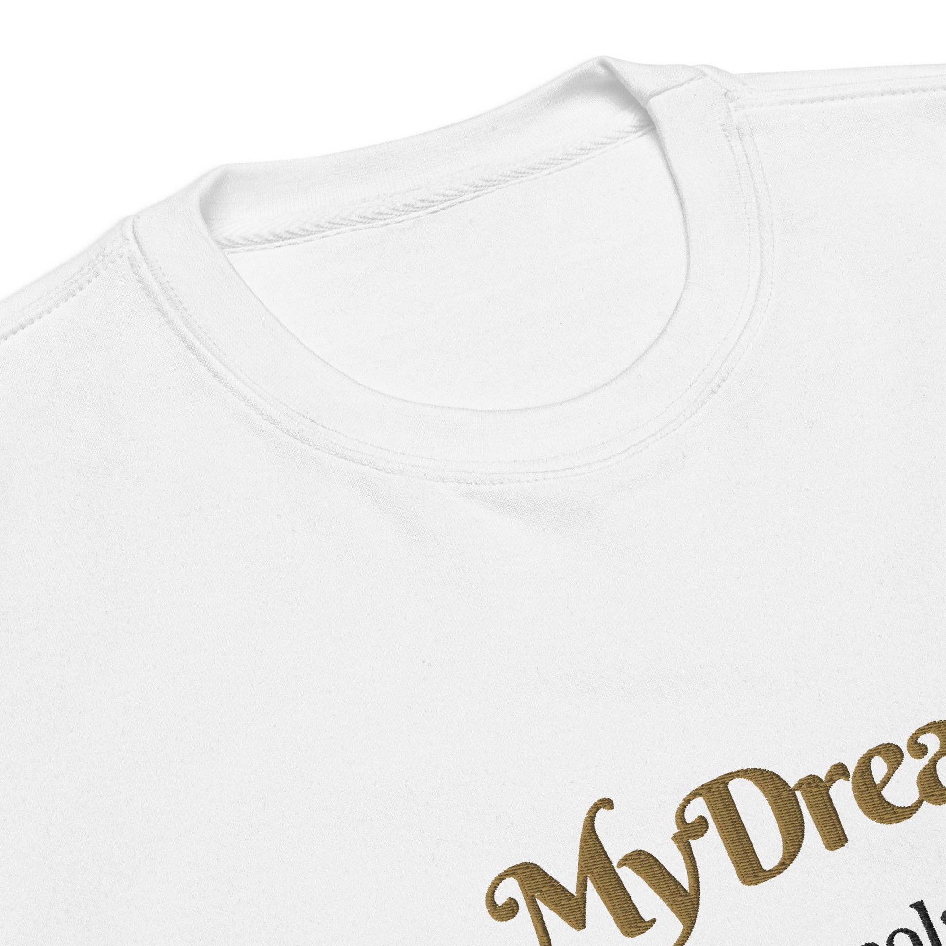 Our Unisex Premium Sweatshirt with the embroidered quote “My Dream – Hot Chocolate Without Calories” is your go-to for the cozy season — a perfect blend of comfort, humor, and winter charm.